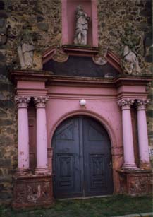 The stylish Baroque entrance to the castle. The statues long for restoration.
